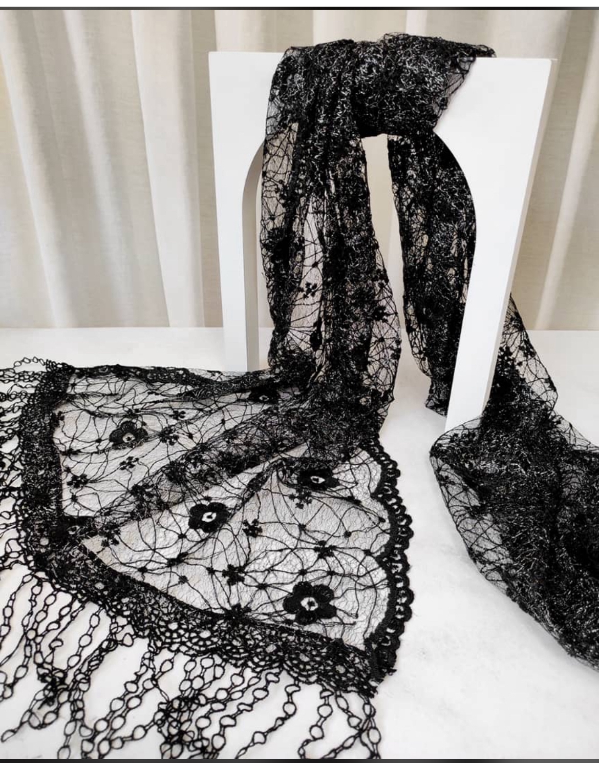 ناموجودشال حریر کروشه حاشیه گلدوزی