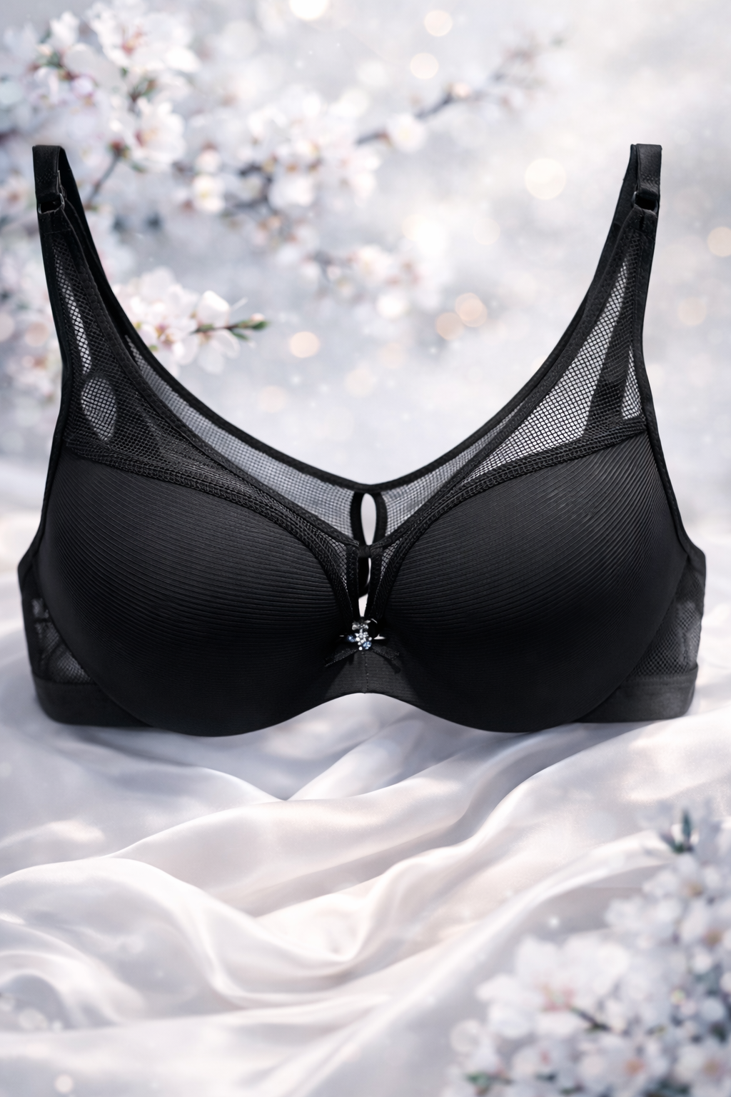 این سوتین با طراحی خاص و مدرن، انتخابی عالی برای خانمهایی هست که همزمان به زیبایی و راحتی اهمیت میدن. قسمت بالای کاپ با تور ظریف طراحی شده که جلوهای لطیف و جذاب به کار داده و باعث میشه روی بدن حالت خیلی قشنگتری داشته باشه.